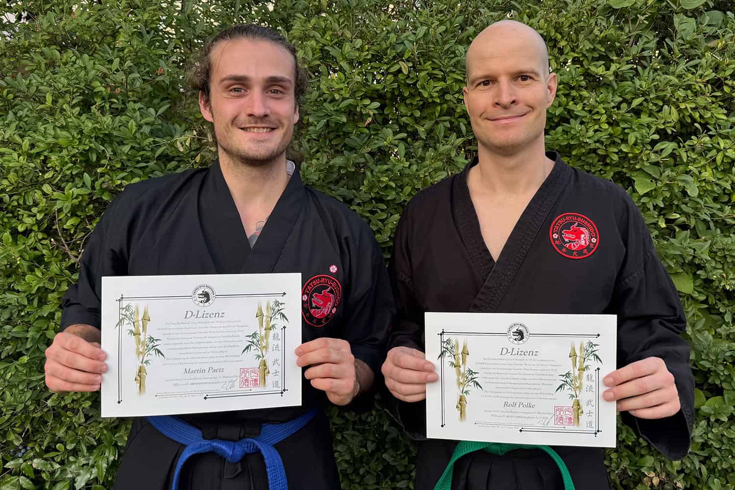 Am 06. August 2025 legten Rolf Polke und Martin Paetz erfolgreich ihre Lehrprobe zur D-Lizenz im Tatsu-Ryu-Bushido Limburgerhof ab. Die Tatsu-Ryu-Bushido Lizenz D Kompakt mit 30 LE ist angelehnt an der DOSB-Rahmenrichtlinie. In der Lizenz D werden Themen aus dem Bereich Übungsleiter, Jugendleiter und Vereinsmanager behandelt. Hinzu kommen mindestens 15 LE-Praktika als Assistent im Training. Die Lizenzen im Tatsu-Ryu-Bushido werden nur ausgestellt, wenn die Lehrprobe erfolgte, ein Erster-Hilfe-Nachweis und ein erweitertes polizeiliches Führungszeugnis vorliegen, sowie der Ehrenkodex unterschrieben wurde und sind 4 Jahre gültig. Eine Verlängerung um 4 Kalenderjahre erfolgt mit einer Weiterbildung mit 15 LE und Wiedervorlage des erweiterten polizeilichen Führungszeugnisses. Rolf hatte zum Thema Kräftigung und Dehnung für stärkere Tritte, Martin hatte ein Segment zum Thema Fallschule mit Partner vorbereitet. Beide Lehrproben wurden von dem Ausbildungsleiter Christian Wiederanders mit IHK und DOSB-Ausbilderzertifikat beobachtet und bewertet. Beide Übungseinheiten wurden im Anschluss diskutiert und auch von den Teilnehmern kommentiert (an dieser Stelle vielen Dank an Lance und Ute, die als Schüler für die Lehrprobe zur Verfügung standen). Mit diesen beiden neu erworbenen Lizenzen stehen dem Tatsu-Ryu-Bushido regional nun zwei weitere zertifizierte Übungsleiter zur Verfügung. 2025 geht zusätzlich die Ausbildung von sechs weiteren Trainer-Assistenten weiter, die ebenfalls in der Seminarreihe zur D-Lizenz eingeschrieben sind.